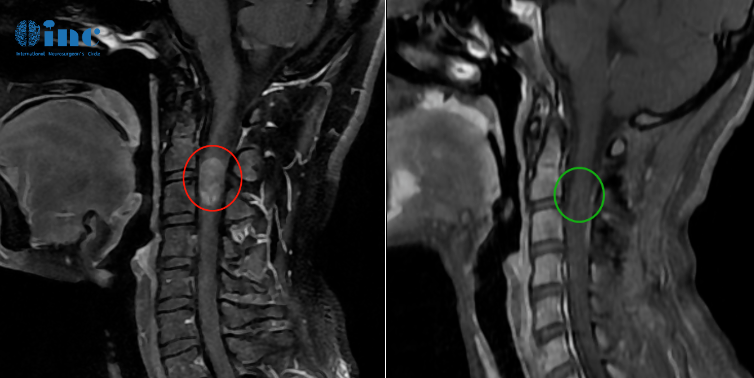 患者情况:28岁的潇潇6年前开始出现肩部至腰部疼痛,刚工作的她以为是工作疲劳导致的,并未引起特别重视,只是定期进行按摩治疗。然而两年前,潇潇肩部后侧疼痛加剧,于当地医院行磁共振检查,提示髓内占位性病变,保守治疗无效。2021年7月行增强磁共振提示C3水平占位,直径7mm。当地医院排除炎性病变。因考虑到手术风险大,未作手术治疗。2021年10月复查磁共振提示影像较前大致相仿。2022年6月磁共振提示大小约8*12*14mm。2022年10月磁共振提示8*12*19mm。肿瘤持续进展,年轻的潇潇不愿意继续坐以待毙,等待脊髓髓内这颗炸弹引爆自己的生命,于是她开始四处寻求能够为自己顺利手术的主刀医生。在病友的下,她开始了解到这次为她成功手术的——INC德国巴特朗菲教授。