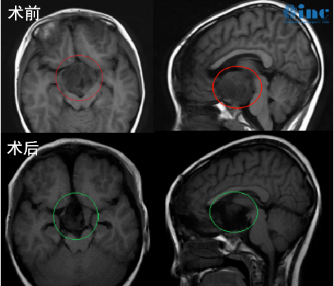 治疗过程:后求诊于INC国际神经外科教授,在巴教授主刀下完成了保神经、近全切的手术效果(切除率达到了95%以上),手术结束后一个小时左右苏醒。当天就转到普通病房,术后MR显示肿瘤近全切(95%以上)。术后巴教授去病房查房,孩子对答如流,视力得以保留。悦悦父母终于可以放下心来,孩子都很好,可爱活泼、充满神采,生活都慢慢步入正轨。