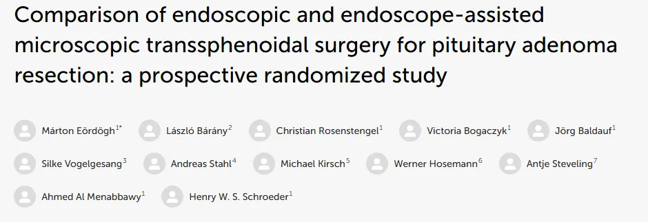 2025年7月,由世界神经外科学会联合会(WFNS)内镜委员会前主席Henry W.S.Schroeder(施罗德)教授等人联合发表的研究《Comparison of endoscopic and endoscope-assisted microscopic transsphenoidal surgery for pituitary adenoma resection:a prospective randomized study》被刊登于国际期刊。