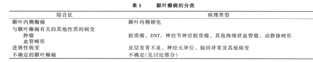 在部分性癫痫的分类中可以见到MTS。颞叶癫痫有不同的临床症状(如怀疑部分性癫痫起源于颞叶)可以将颞叶癫痫进一步按发作类型分为几种亚型(表1)。颞叶内侧癫痫与典型的MTS表现的征象有密切关系:即出现海马、杏仁核和海马旁回的硬化。而与病变有关系的颞叶癫痫可以有多种类型的病变,这些病变与其他脑叶新皮层起源的癫痫灶相类似,如肿瘤、血管畸形、病变加重和不能明确的其他病变。较后,有相当比例的内侧颞叶癫痫病人,包括深部电较检查显示癫痫起源于颞叶内侧者,通过目前的检查如MRI和病理学检查难以证实有MTS。这种病例我们称之为可疑性颞叶癫痫。