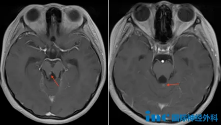 然而,事情似乎正在朝着坏的方向发展。半年后的一次复查,核磁上显示:小脑蚓部、右侧大脑脚异常强化灶大致相仿,双侧脑室室管膜下可见数个小结节,医生怀疑为肿瘤复发或转移。