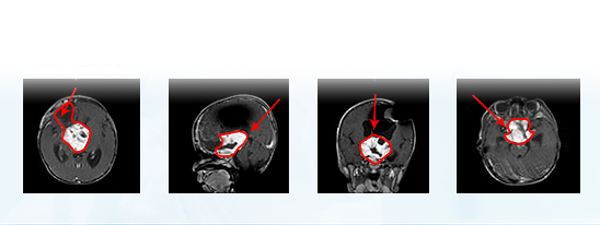 INC国际神经外科医生集团曾接诊过一个5岁大的视神经胶质瘤小朋友,同样也是面临如此凶险的情况,虽然已在国内经历了一次手术,但为追求手术全切、保全孩子视力,在收到巴教授的远程咨询意见后,一家人决定不远万里飞赴德国手术。在德国INI国际神经学研究所,经巴特朗菲教授与Di Rocco教授曾联合手术,这个孩子的视神经胶质瘤得到了≥大概率的切除程度,达全切,从术前侵袭至双侧额叶及三脑室的较大瘤体,到术后影像上未见瘤体,从几近失明到逐渐地视力恢复接近正常,他的手术效果可以说是教科书级的示范案例。