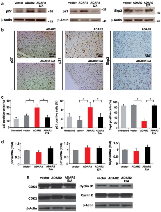 (a)空载体、ADAR2及ADAR2 E/A细胞总蛋白的p27、p21、Skp2免疫印迹。