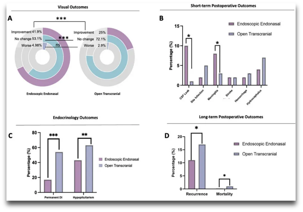 *内容来源:Figueredo LF,Martínez AL et al.Current Role of Endoscopic Endonasal Approach for Craniopharyngiomas:A 10-Year Systematic Review and Meta-Analysis Comparison with the Open Transcranial Approach.Brain Sci.2023 May 23;13(6):842.
