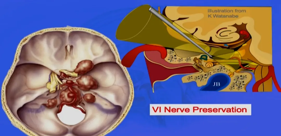 手术两大注意点:降低脑嵴液漏风险,保护外展神经(CN VI)。