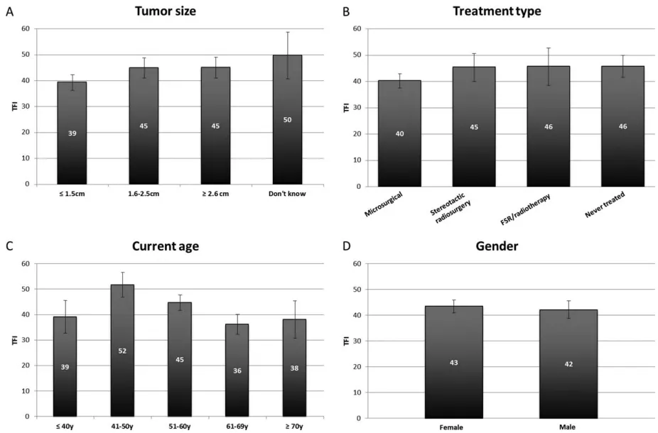 治疗方式无关:无论是接受了创伤较大的开颅手术,还是精准的放射治疗,或是选择了保守观察,患者群体的平均TFI得分都没有本质区别。