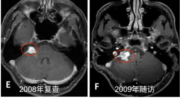 达文的病例揭示了听神经瘤治疗中的一个严峻挑战:即使经过多次手术和放疗,肿瘤仍可能复发甚至恶变。医学研究发现,听神经瘤在伽玛刀放射外科治疗后的恶性变虽极为罕见,但确实是潜在的严重并发症。