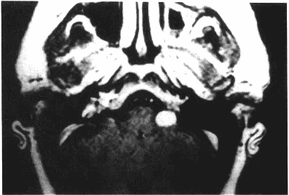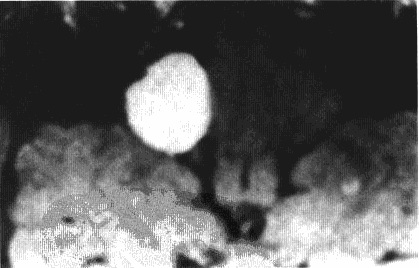 图2:该管内肿瘤延伸至后颅窝的蛛网膜下腔