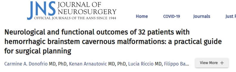 2025年1月3日,意大利ASST Cremona神经外科等团队合作在神经外科领域知名学术期刊《Journal of Neurosurgery》上报道了32例出血性脑干海绵状血管畸形患者预后情况,并提出了此领域的手术规划实用指南。