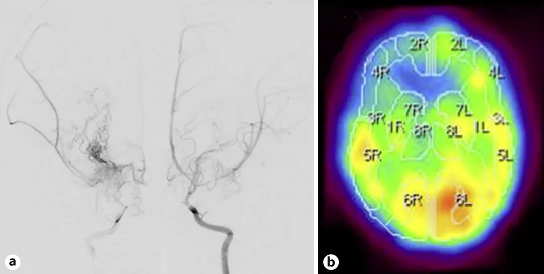 2岁女孩会突然摔倒,后来出现突发抽搐,检查发现:烟雾病合并脑梗死,双侧颈内动脉严重狭窄,以及右额叶脑血流明显减少。