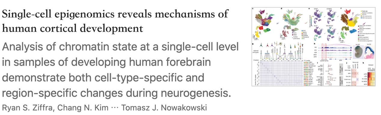研究十五:Single-cell epigenomics reveals mechanisms of human cortical development。该工作利用单细胞ATAC-seq,分析了人皮层发育过程中不同细胞类型的基因位点和调控元件图谱,揭示了大脑皮层神经元祖细胞的多样性。