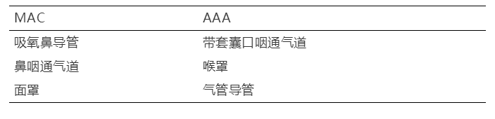 AAA模式是深度镇静甚至接近于全身麻醉的一种临床麻醉技术。患者OAA/S<3或BIS<60,可以保留自主呼吸,但往往需要放置气道辅助工具以便必要时施行机械通气。
